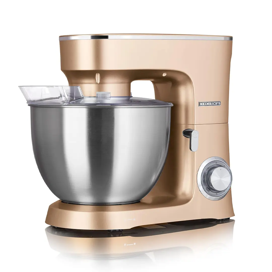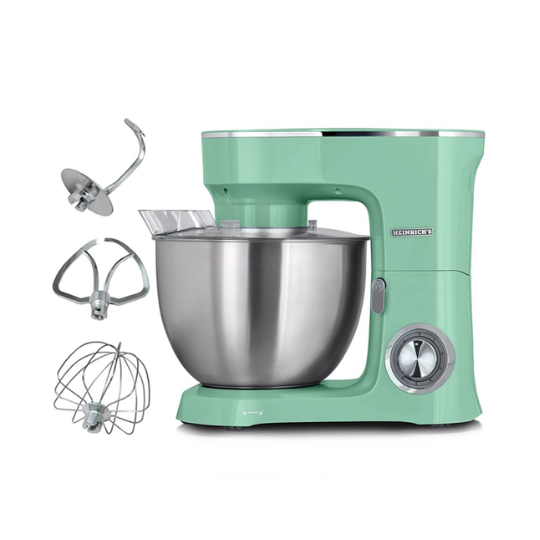 همزن هنریچ 1300 وات مدل HKM 6278 Heinrichs HKM 6278 Stand Mixer قدرت موتور: 1300 وات ظرفیت کاسه: 6.5 لیتر جنس گیربکس فلزی جنس بدنه: پلاستیک فشرده جنس بالونی خامه زن: تمام فلزی
